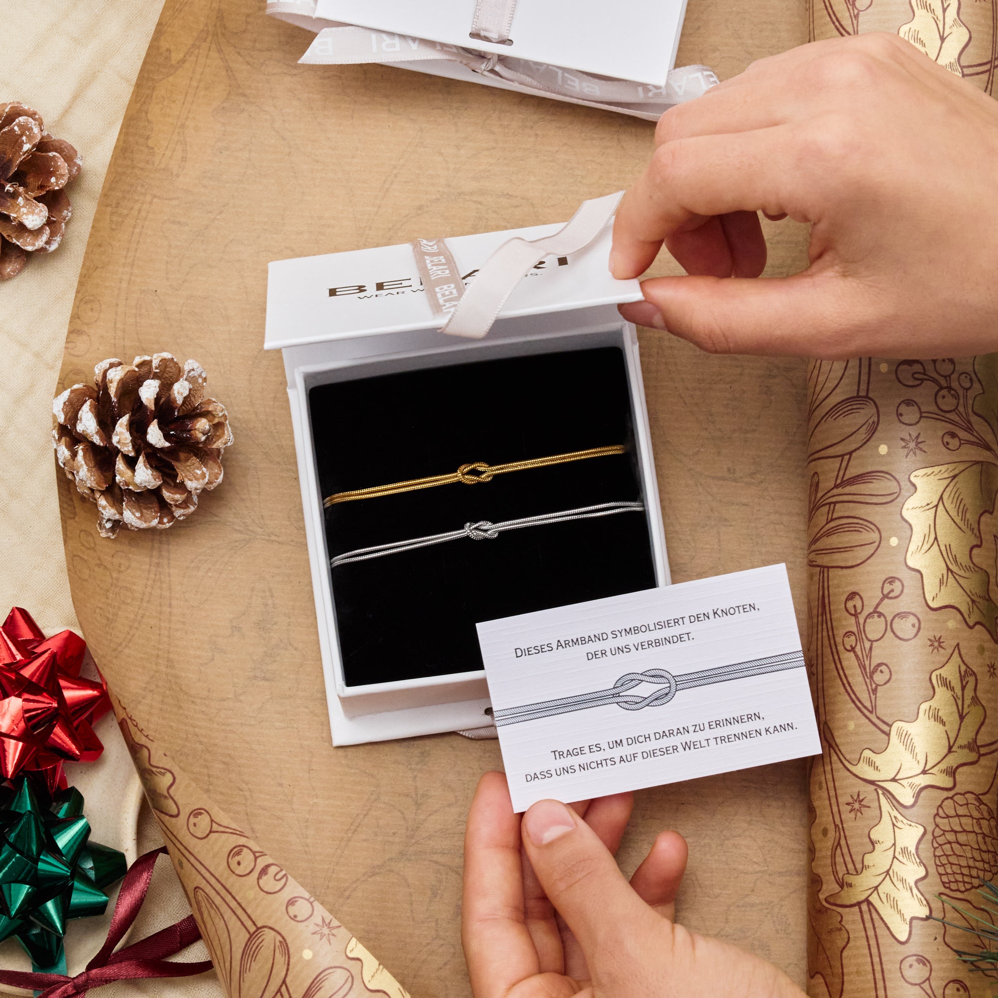 Beschenke deine Liebsten und dich selbst mit einem unvergesslichen Geschenk. Das Armband symbolisiert den Knoten, der euch für immer zusammenhält.
